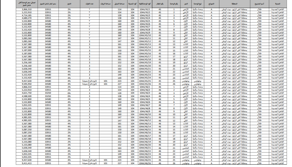 وتراوح سعر الشقة ما بين 3,866,310 – 9,457,630 جنيه .