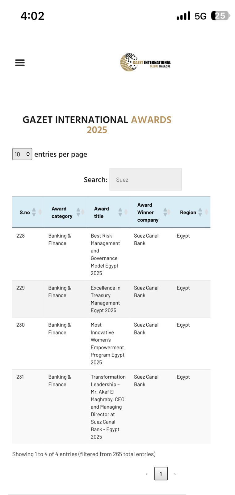 حقق بنك قناة السويس إنجازًا مؤسسيًا بحصوله على أربع جوائز دولية ضمن Gazet International Awards 2025، وذلك في إطار تقييم الأداء المؤسسي في عدد من المجالات المصرفية