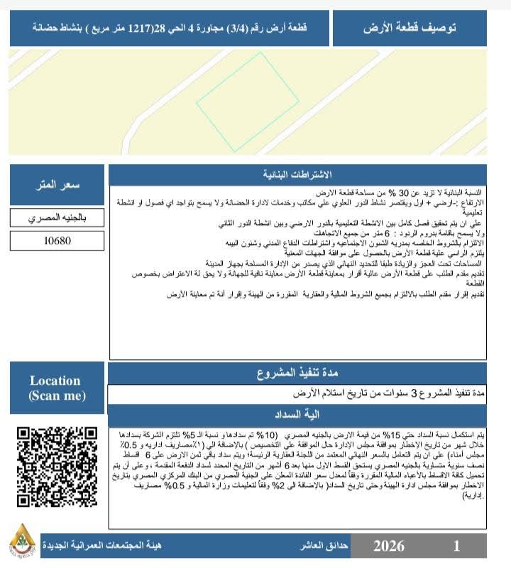 ▪️قطعة أرض رقم (٣/٤) – مجاورة ٤ الحي ٢٨ (الفيروز)