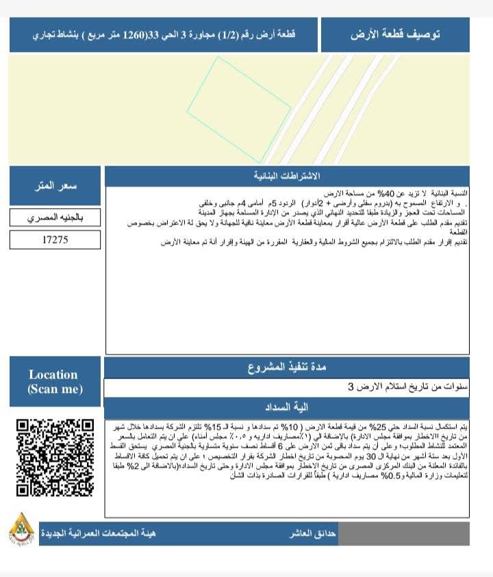 ويؤكد جهاز المدينة أن المرحلة الحالية تمثل فرصة استثمارية واعدة للمشاركة في مسيرة النهضة العمرانية والاقتصادية المتسارعة التي تشهدها المدينة ، مجددًا دعوته للمستثمرين الجادين لاغتنام هذه الفرص التي تحقق قيمة مضافة حقيقية، وتعود بالنفع على المستثمر والمجتمع، في إطار رؤية الدولة المصرية لتعظيم العائد من موارد المدن الجديدة ودعم التنمية الشاملة.