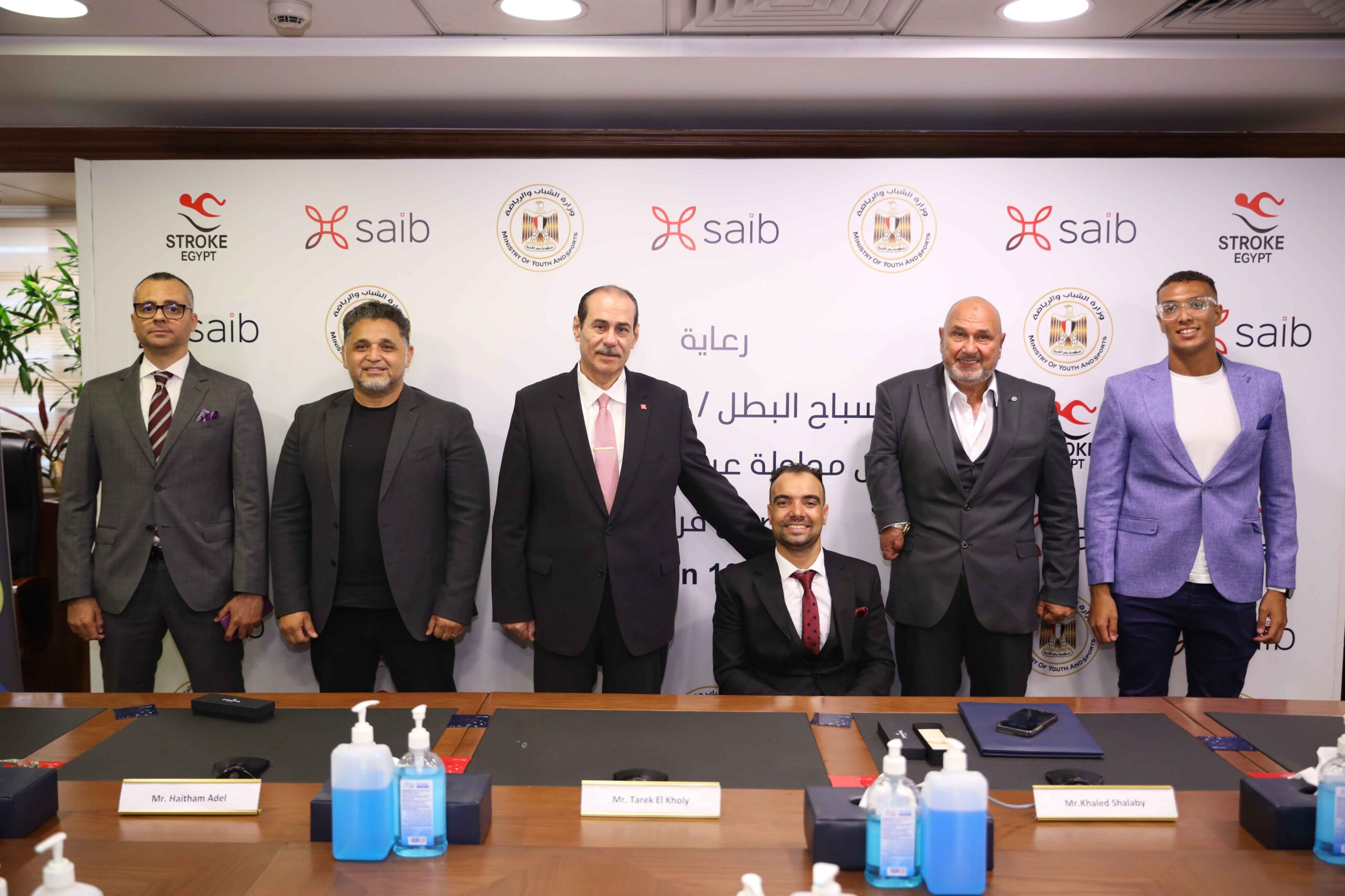 أقيمت مراسم التوقيع في مقر بنك saibوقع عليها كلاً من طارق الخولي رئيس مجلس الإدارة العضو المنتدب للبنك والكابتن خالد شلبي رئيس مجلس إدارة شركة سترووك إيجيبت والسباح هيثم عادل بحضور عمرو نصير مساعد العضو المنتدب لقطاعات التجزئة المصرفية والفروع وفريق عمل التسويق والاتصال المؤسسي والمستشارة الثقافية لسفارة المجر بمصر كورنيلا كوربسكى، وسباحين مصريين بقيادة خالد شلبى عابر المانش بذراع واحده عام ١٩٨٣ والسباحة الأوليمبية شيرويت حافظ