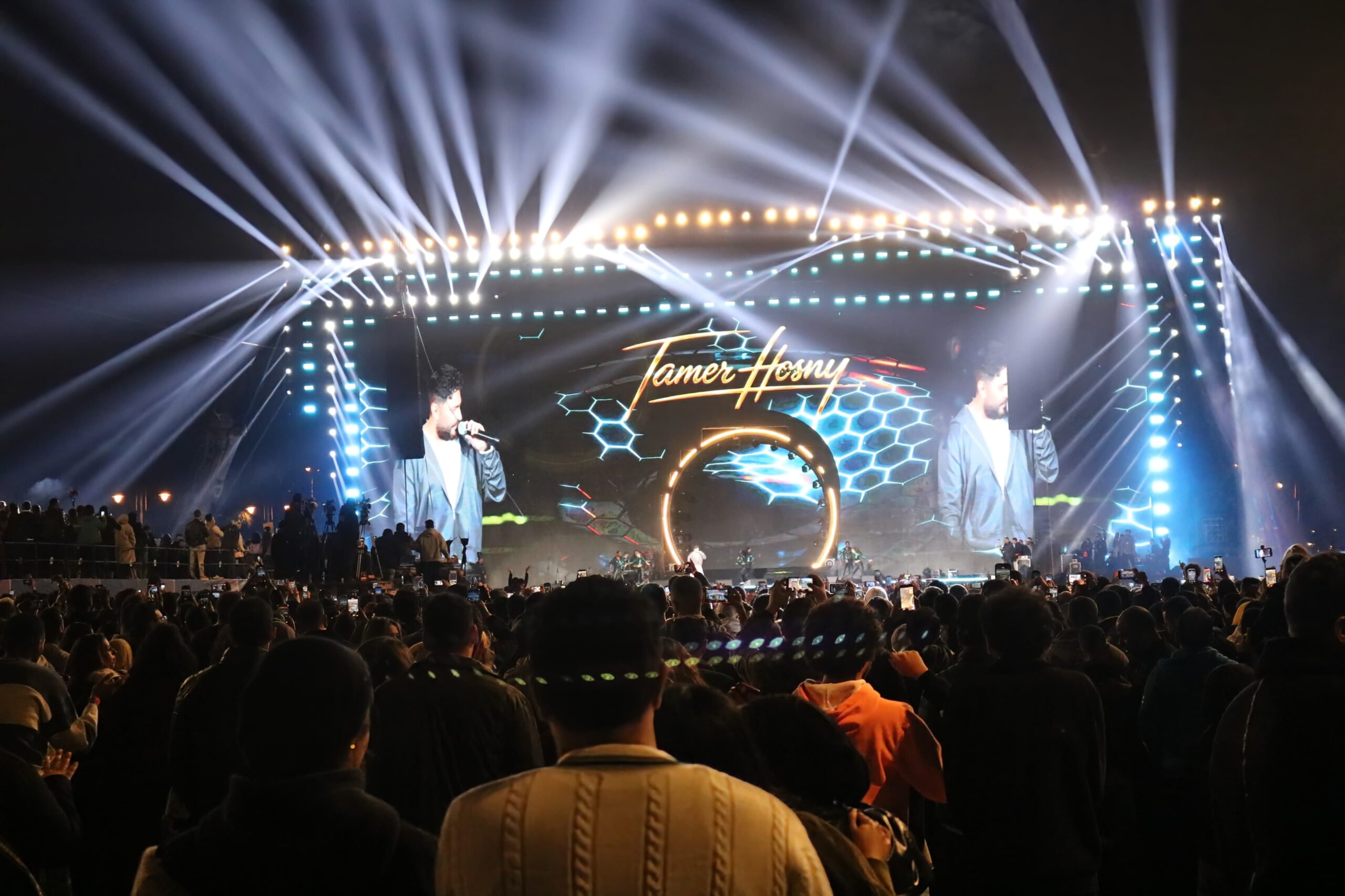 أحيا النجم تامر حسني حفلًا غنائيًا كبيرًا في أوبن إير مول مدينتي، وسط حضور جماهيري كبير وتفاعل لافت من محبيه، في أجواء حماسية مميزة.