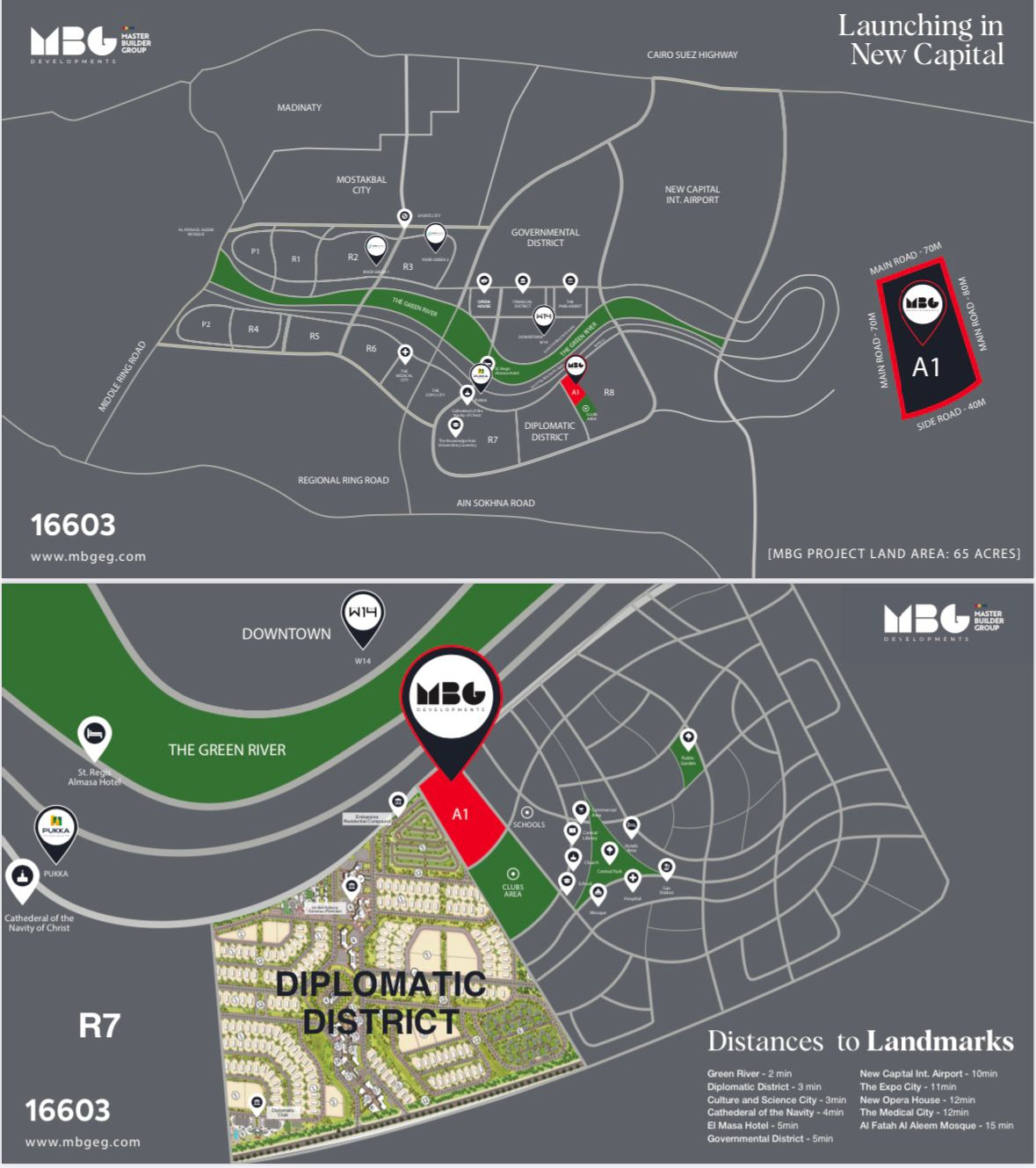 وحول مزايا قطعة الأرض الجديدة التى حصلت عليها شركة MBG للتطوير العقاري، يوضح الدكتور محمود العدل قائلا” قطعة الأرض A1 مساحتها 65فدان تقع علي 4 محاور رئيسية ، وتطل على الحى الدبلوماسى، حى السفارات بالعاصمة الإدارية الجديدة، مباشرة، ويعد أرقي أحياء العاصمة الإدارية، والذي يتضمن أكثر من 200 سفارة وقنصلية لمختلف دول العالم، كما تطل على الأحياء السكنية للسفارات والجالية الدبلوماسية ومبنى الأمم المتحدة، وبإطلالة مميزة على المحور المركزى.