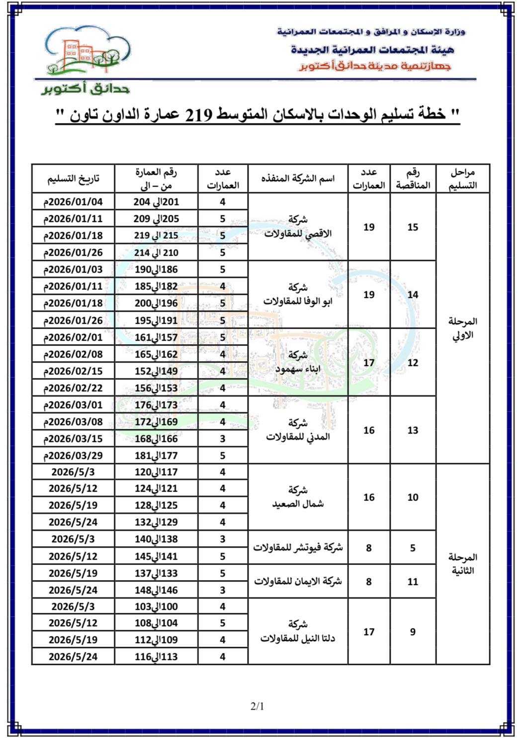 أشار جهاز المدينة إلى أن تسليم شقق المشروع يسير وفق خطة تسليم ومواعيد موضوعة للمشروع؛ فتم تجهيز عدد ٣٨ عمارة بعدد ٩١٢ وحدة سكنية كاملة المرافق والكهرباء والغاز والاتصالات تم البدء في تسليمها خلال شهر يناير ٢٠٢٦.