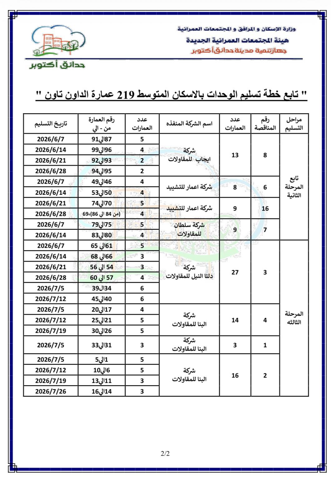 كما تم تجهيز عدد ١٧ عمارة بعدد ٤٠٨ وحدة سكنية تم البدء فى تسليمها فى فبراير ٢٠٢٦، وعدد ١٦ عمارة بعدد ٣٨٤ سكنية جارى تسليمها فى مارس الحالي، وأفادت إدارة الإسكان والخدمات بأنه تم تسليم عدد ٧٤٠ وحدة سكنية لمستحقيها حتى تاريخه وذلك بعد إتمام إجراءات التعاقد على عدادات الكهرباء والمياه والغاز.